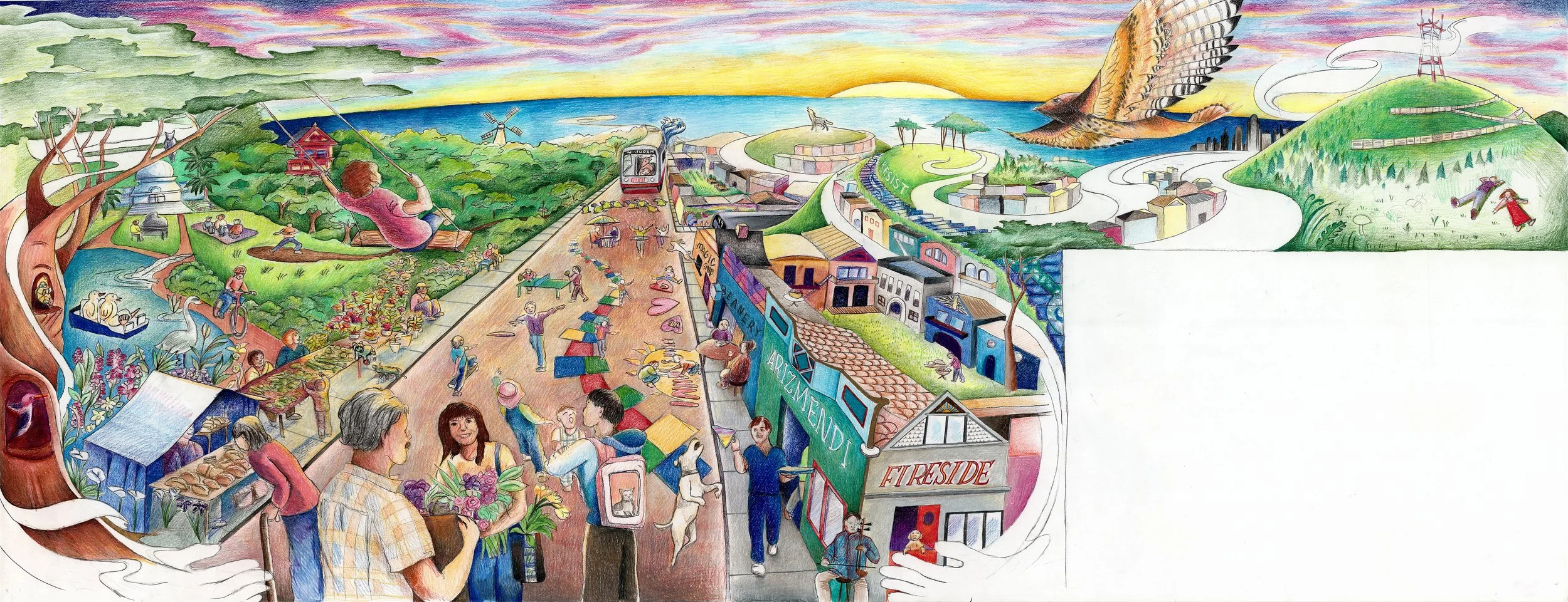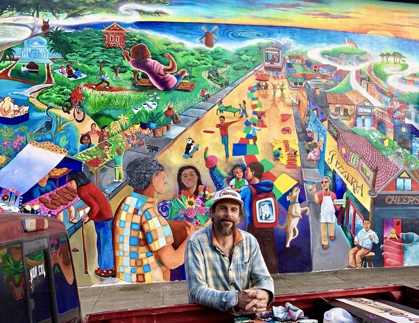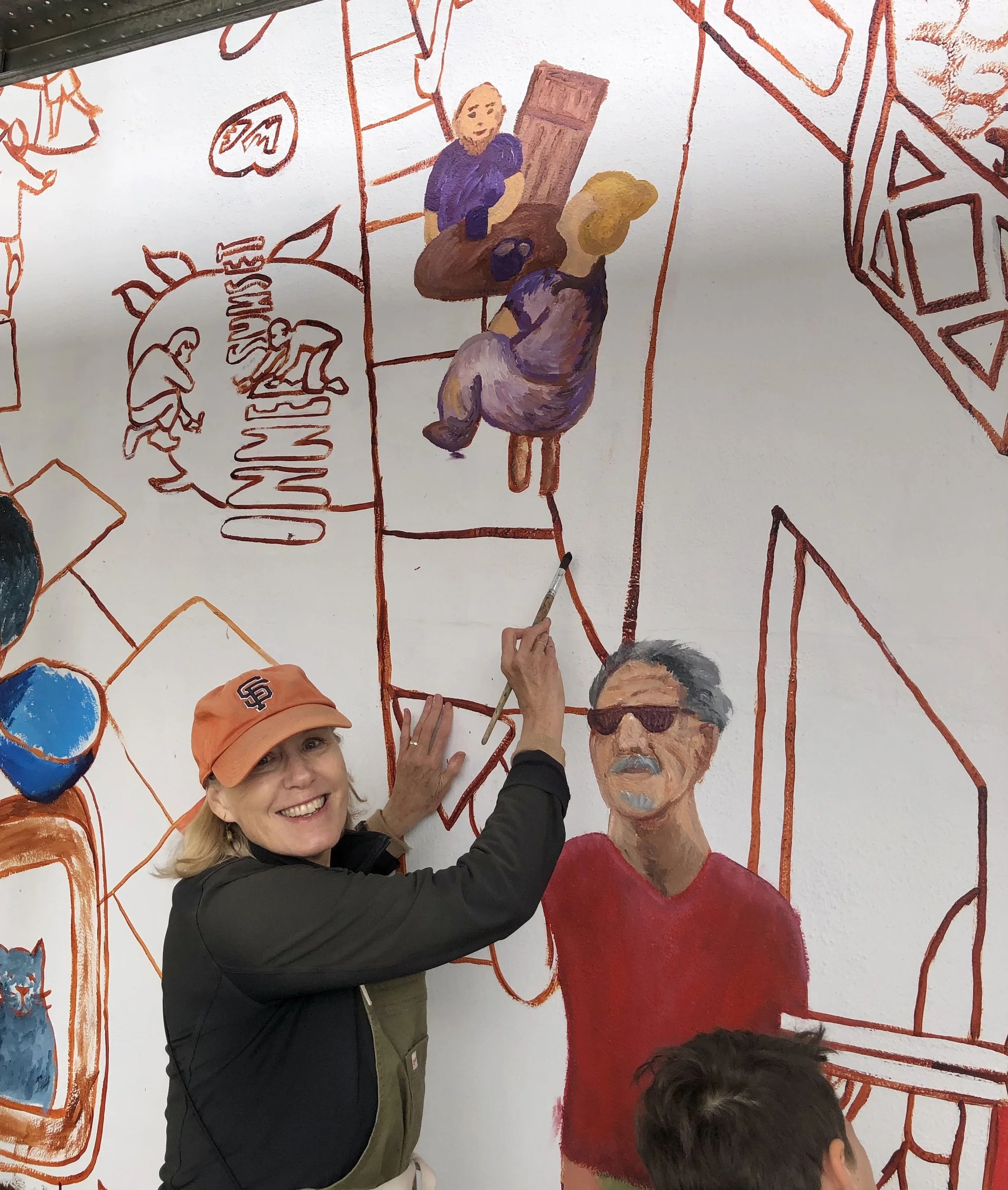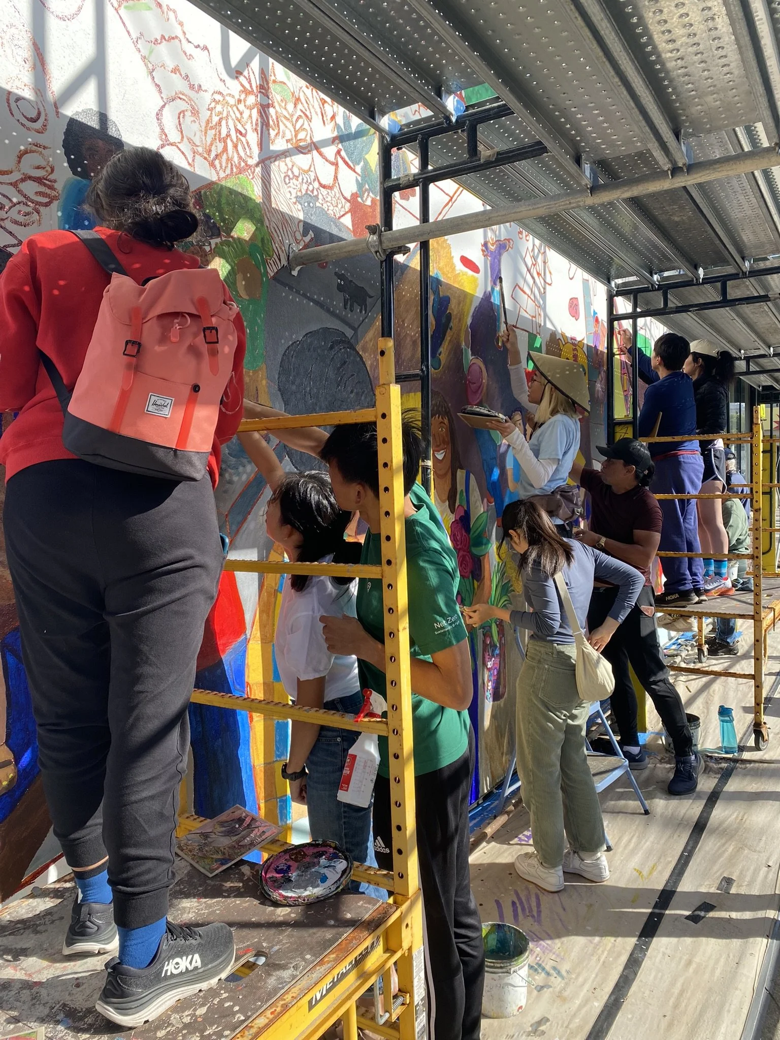In September 2024 the Sunset district of San Francisco started a community mural led by myself and Deirdre Weinberg via funding through an SFAC participatory arts grant. We workshopped the design with over 75+ neighborhood residents~ hundreds more joining in to help with painting every Sunday over the course of the following months. A true labor of community love.