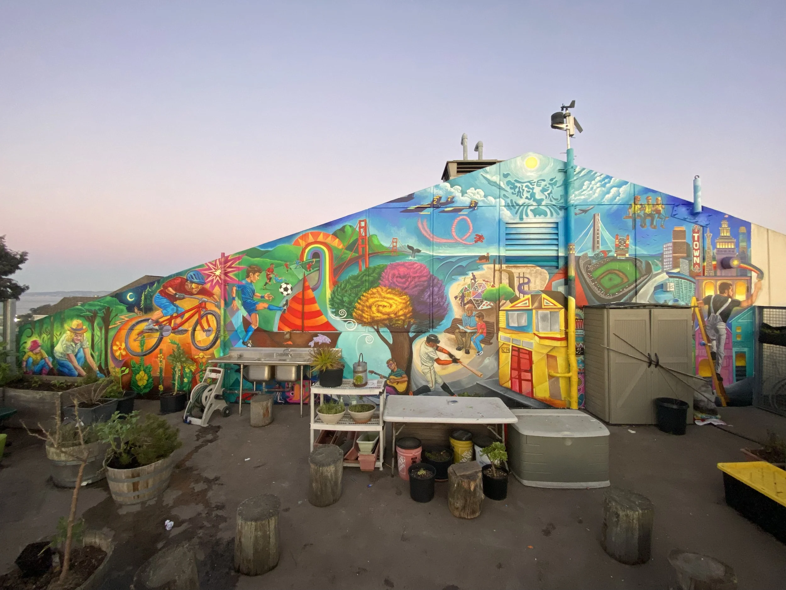 In September 2024, working with the Town School for Boys in San Francisco California alongside Francisco Franco to establish a mural arts program and begin with the beautification of the school's rooftop garden. 13 Boys were involved in the design & painting process throughout the 12 week program, working with the groups weekly for our mural sessions and having a blast throughout the whole time! So Proud of the students for their hard work and amazing results!